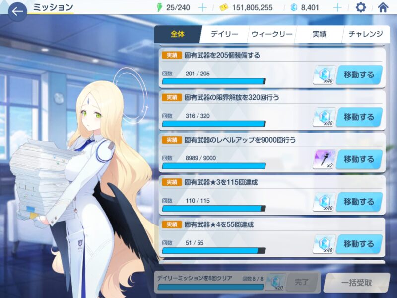 無事にチェリノは固有3になり、この機会にショップでコイン系で買える神名文字を買い漁って、上げられるだけ上げた。結果234人中、星5以上は201人、固有3以上は110人、固有4は51人。サービス終了までに全生徒星5以上を目指したいと思っているのだけれど、固有4実装にともなってデフォルトが実質星4になったし、タイミングがほんとにわからないな。待てば待つほどすり抜けで必要リソースは減っていくけど、生徒も増える。が、今後増える生徒は星4スタート……もしかして今なのか?