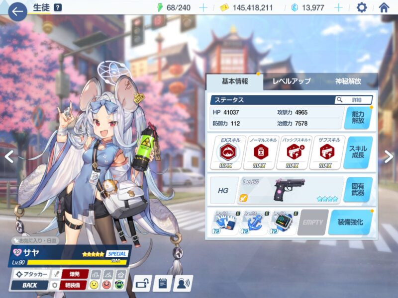 今日は戦術対抗戦コインでサヤを固有4へ。サヤはたま~に継続ダメージ要員として編成する機会があるけれど、固有4の恩恵はほぼなさそう。今後SPECIAL生徒の固有4ボーナスが必須になるような未来がやってくるのかどうか……。