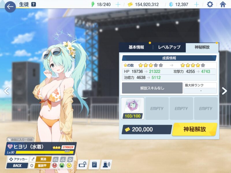 今日は熟達証書でヒヨリ(水着)を星4に……単純計算で星5になるのは来年か。