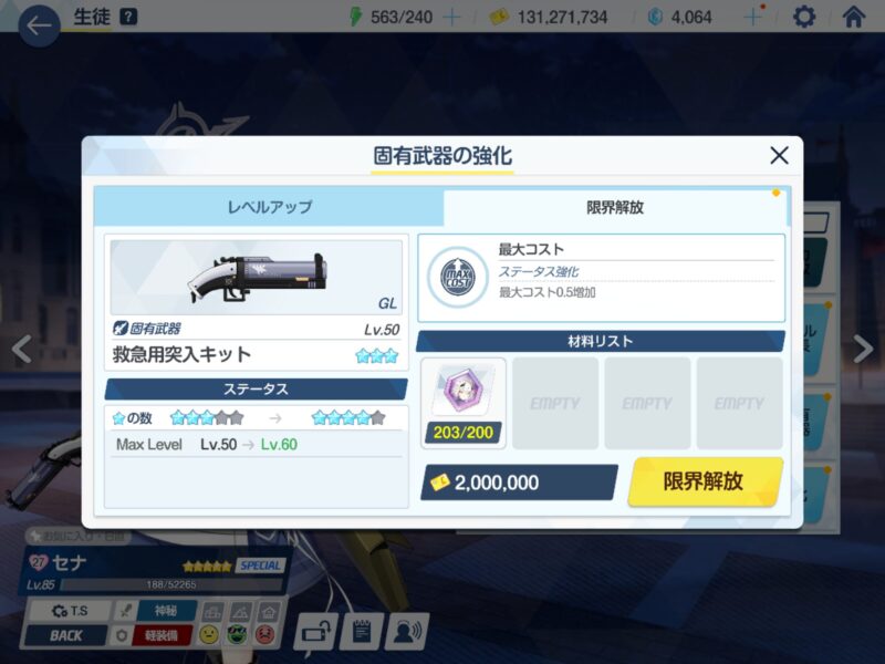 大決戦レアコインでセナの神名文字を購入、固有4へ。全然編成に入れたことがない生徒、まだ愛用品が来ていないので今後強化される可能性もあるけれど、タクティカルサポートの特性上、効果範囲の維持が難しいのでその分のマイナスイメージを覆す能力が欲しいよなぁ……。