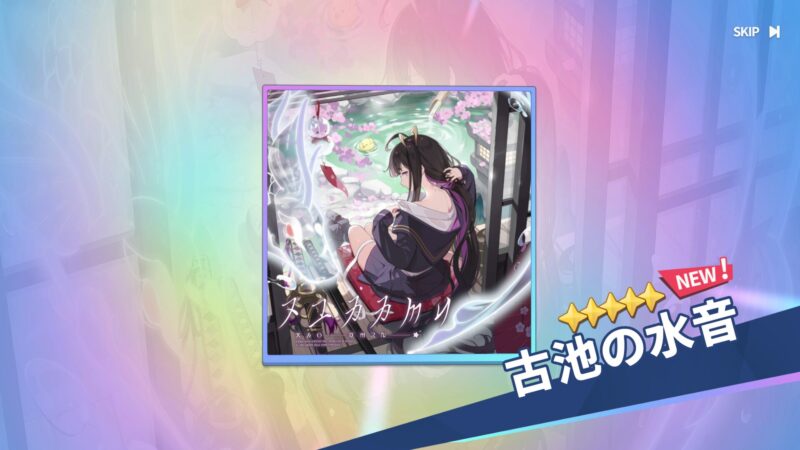 リリース記念パック2つと星の欠片6,000個を消費して、チトセのモチーフロスレコを獲得、効果は水ダメージアップ、他のロスレコよりも発動条件もゆるめで数値も高め。これは優先的に強化したい。