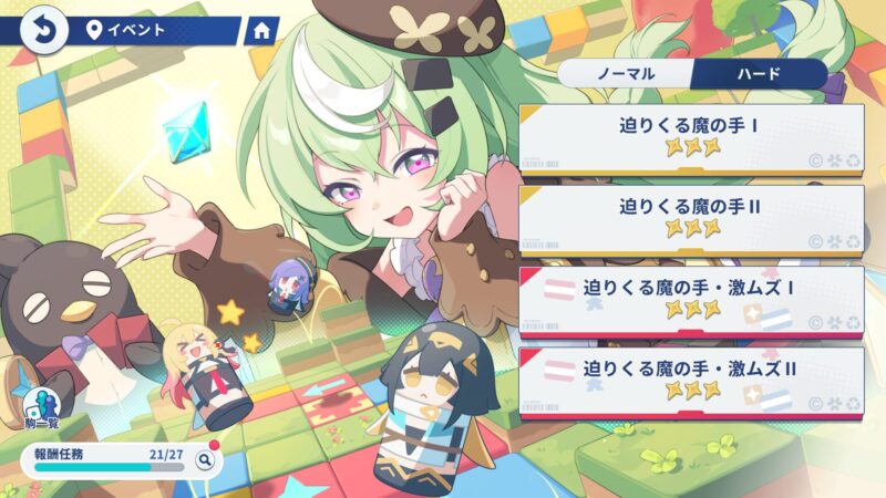 守れ!星の塔、ハードも全ステージ初見クリアできた、激ムズのステージの序盤だけちょっとヒヤヒヤしたけれど、配置が完了してからは安定して、後はひたすらアイテム連続使用で切り抜けられた。期間の短いミニゲームとしてほどよい難易度だったと思う。