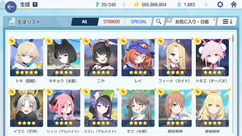 フェス限定生徒の育成も済ませたし、素材を放出するタイミングではあるけれどどうしようか、星3生徒を全員星4にする、レベル85生徒を90まで上げる、やるならこの辺。