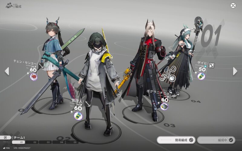 武陵攻略にどうしてもチェンを連れて行きたくて、てきとうに考えた物理パーティを編成。ザイヒはそのままアルデリアでもよかったのだけれど、せっかくならいろんなオペレータを育成したかったので。そして育成素材はほぼすべて使い切ってしまった。レベル60以降は別の素材を使うようなので、次の解放直後は大丈夫そうだけれど、またすぐ素材集めに苦しむことになりそう。