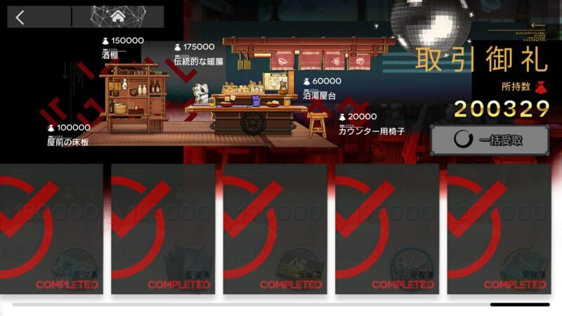 朝は日課だけ、合同火力演習の最終日はギリギリ140枚獲得、コインはオーパーツが枯渇したときのためにとっておきたいので、秘伝ノートの交換はパス、100冊近くあるし。