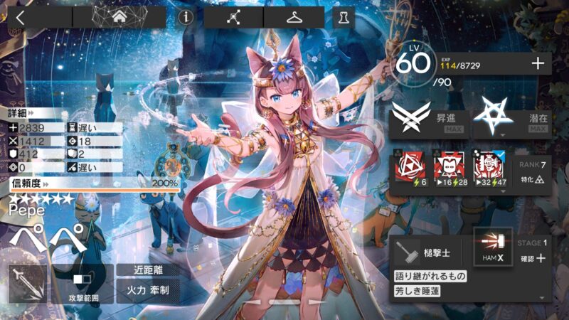 来週にせまったコラボイベントで招集できるオペレーター、5人のうち星6はひとりだけだとお知らせに書かれていたので、安心してペペのコーデを購入、うしろの猫たちもかわいい。