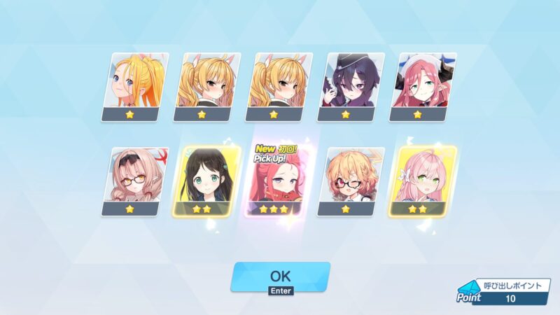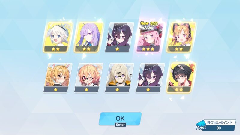 そして90連目でエイミ(臨戦)が来てくれた。しかも星3生徒が計5回も来てくれて、これはまごうことなき大勝利。青輝石を買い足すこともなくダブルピックアップを切り抜けることができた。……まぁ、フェスのピックアップが振るわなかったから、その分を取り返した感じか。また次のピックアップまでに青輝石貯めなければ。