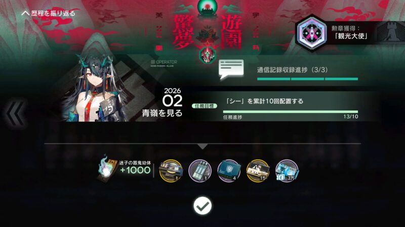 駆け込みで遊覧者名簿のシーをクリア、といっても最終ステージで負けて逃げ帰ってきたわけだけれど……。